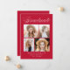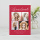 Anúncio de graduação elegante com "Formando" exibido no topo em um roteiro de caligrafia branco com fundo vermelho. O design apresenta quatro fotos do formando exibidas em um layout colage com o nome do formando, o nome da escola e o ano de graduação mostrado abaixo. O anúncio de 4 fotos de graduação é revertido para exibir texto opcional, como planos futuros, detalhes de festa de formatura, etc. O anúncio de formatura em chic é perfeito para anunciar a graduação de formandos segundos graus e universitários.