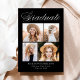 Anúncio de graduação elegante com "Formando" exibido no topo em um roteiro de caligrafia branco com fundo preto. O design apresenta quatro fotos do formando exibidas em um layout colage com o nome do formando, o nome da escola e o ano de graduação mostrado abaixo. O anúncio de 4 fotos de graduação é revertido para exibir texto opcional, como planos futuros, detalhes de festa de formatura, etc. O anúncio de formatura em chic é perfeito para anunciar a graduação de formandos segundos graus e universitários.