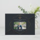 Este anúncio de formatura da escola de direito personalizado apresenta um design de hexágono geométrico dourado com escalas de justiça colocadas acima de uma fotografia do formando. Anúncios de fotografia elegantes modernos para um novo advogado formando-se com a classe de 2025.