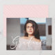 Anuncie sua conquista especial do formando com nossos anúncios de graduação do Momentous Script. Os anúncios de graduação em na moda apresentam uma fonte moderna de script de caligrafia que sobrepõe a foto favorita do mais velho do formando. Personalize os modernos anúncios de graduação com o nome do formando, o nome da escola e o ano de graduação. O verso do anúncio apresenta um fundo estriado diagonal desenhado à mão, em cor-de-rosa-claro.