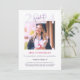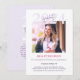Cartão de anúncio de graduação rosa e roxo, claramente minimalista. É uma paleta de cores que fala sobre conquistas acadêmicas, intelecto, paixão e realidade. Aqui, uma tipografia limpa encontra um estilo fotográfico. Perfeito para segundos graus ou formandos universitários. Simples, moderno, na moda! Celebre a sua conquista com o nosso belo convite à graduação, totalmente personalizável! Personalize e comprar agora!