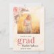 impressão de mármore do ouro como fundo. Decorado com grama-pampas e florais cor-de-rosa pincelados. Personalize e adicione sua própria foto do formando. Adicione o nome do ano e da escola. Com a palavra: Formando escrito com letras grandes. Voltar: Foto do segundo, seu texto.