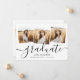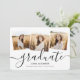 Comemore o grande dia com este cartão de anúncio de graduação moderno e elegante com um roteiro único de caligrafia e um esquema de cores preto e branco. O design de dois lados inclui uma colagem de 4 fotos para mostrar suas memórias de graduação favoritas. Perfeito para formandos segundos graus e universitários da Classe de 2023. Esta design simples e minimalista certamente impressionará sua família e seus amigos. Ordene agora que faça do seu anúncio de graduação um anúncio memorável!