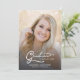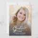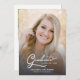 Simples script moderno com duas fotos do Anúncio de Graduação. Apresentando uma foto do tamanho do cheio na frente com uma sobreposição de texto branco e uma foto no verso com detalhes opcionais.