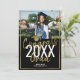 O Anúncio de Graduação de Fotos de Script Dourado e Preto Moderno é uma forma elegante e na moda de anunciar sua formatura. Esta placa apresenta um fundo preto com um elegante guião dourado, perfeito para mostrar a sua fotografia de graduação. O design é moderno e sofisticado, fazer é uma escolha perfeita para qualquer formando. Compartilhe as boas notícias da sua formatura com seus amigos e família de uma forma sofisticada com este belo cartão de anúncio.
