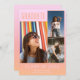 Anúncio de graduação para a sua turma de graduação em segundo grau de 2022, com um belo pêssego do pôr do sol e um design cor-de-rosa e três fotos de seu mais velho. Personalize o lado frontal do cartão com a foto, o nome e o nome da escola. Esse anúncio de graduação se inverte para coordenar a design de ombre nas costas.