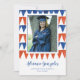 Um anúncio de formatura moderna para celebrar um marco especial! Este design de anúncio de graduação apresenta bandeiras de cores aquáticas vermelho e azul de bunting e um espaço reservado para sua foto. © 2021-Presente | Azeite em vaso™ | Todos os direitos reservados.