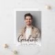 Anúncio de graduação moderno com a foto do formando sobrecarregada com "Formando" em um roteiro ousado contemporâneo. Adicione seu nome, ano de aula e escola em uma simples tipografia.