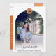 Comemore o formando com este convite para a graduação de roteiros moderno com um quadro fotográfico em forma de arco na frente, uma segunda foto na sala de trás para se gabar do formando também. Classe de 20__ também na frente. Todas as cores do sotaque Terracotta mudaram facilmente para combinar com sua foto ou com as cores da escola.