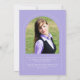 Este simples anúncio de graduação minimalista em arco, lavanda, apresenta um delicado quadro de arco, 2 modelos fotográficos e elegante tipografia moderna.
