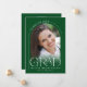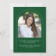 Este anúncio de graduação em arco simples e verde apresenta um delicado quadro de arco, 2 modelos de fotos e elegante tipografia moderna.