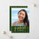 Tenha orgulho, alegria e anuncie ao mundo que seu formando favorito alcançou o seu marco com este convite de anúncio personalizado, simples, moderno e impressionante. Espetacular, elegante, esplêndida escrita à mão com brilho dourado, tipografia branca sans serif e uma foto da sua escolha sobrepõem um fundo verde-listrado de caçador. Personalize o texto personalizado com o nome do seu formando, o nome da escola, o ano de aula e a data de graduação. Na parte de trás, adicione seu bilhete pessoal, na próxima escola que frequentam, informações sobre festas, etc. Correspondendo e coordenando cartas de agradecimento, bonés, ventiladores, guardanapos, placas, banners e outros arranjos de graduação também estão disponíveis nesta coleção de tendências e na moda. Garantido para adicionar diversão na moda à sua ocasião especial! Basta substituir a foto de amostra por uma de suas, digitar as informações de seu formando, personalizar a mensagem no verso e você pode personalizar facilmente este verdadeiro convite para o anúncio de formatura da folha de ouro. Por favor, me mande mensagens com quaisquer perguntas ou solicitações.
