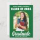 Este anúncio de formando personalizado moderno, verde e branco, apresenta o seu nome de segundo grau ou de faculdade para a classe de 2024. Personalize com seu nome sob o chic, o script manuscrito em negrito para um cartão de graduação personalizado do excelente. Adicione uma fotografia de cheio de segundo na parte traseira.