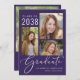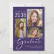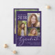 Anúncio de graduação roxo moderno com a frente apresentando uma colagem de 3 fotos, "Formando" em um roteiro branco elegante, e o nome do formando, ano de aula e escola ou universidade em letras brancas simples. No verso, adicione uma foto adicional e sua mensagem personalizada.