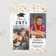 Anúncio de graduação com estrelas douradas e duas fotos na frente com CLASS OF 2021 (editável para outros anos), nome do formando e escola na frente e informações adicionais opcionais sobre seu formando podem ser incluídas no verso juntamente com outra foto. ALTERAÇÕES: Você pode alterar o estilo, o tamanho, a cor ou o posicionamento ou a cor do plano de fundo da fonte de texto clicando em PERSONALIZAR MAIS. DICA DA FOTO: Para obter resultados mais rápidos/melhores, escolha uma foto com o assunto no meio e/ou pré-plante para uma forma semelhante, conforme mostrado ANTES de carregar, e ela preencherá o espaço de fotos perfeitamente. Entre em contato com o designer por meio do Zazzle Chat ou makeitaboutyoustore@gmail.com se você quiser que este design seja modificado, em outro produto ou em itens de coordenação.