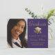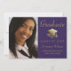 Anuncie sua graduação em segundo grau 2020 para a família e amigos com esta elegante placa plana personalizada de formando fotográfico. O design apresenta sua foto à esquerda (3,5 width x 5 height funciona melhor) à direita em um fundo roxo é um boné e diploma de formando dourada falsa e uma tipografia falsa dourada em um roteiro moderno para você personalizar. Parabéns na sua formatura! Desenhada pela artista Susan Coffey.