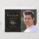 Este cartão de anúncio de graduação moderno e elegante com uma foto e um nome de letra inicial monograma com padrão geométrico em ouro e preto parece realmente apresentável para dar à família e amigos para anunciar um dia elegante de formatura. A coisa excelente aqui é que você pode torná-lo personalizado adicionando o nome, inicial e texto. Fotografia © Storytree Studios, Stanford, CA