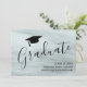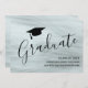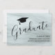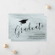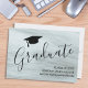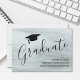 Este cartão de anúncio de graduação moderno e elegante apresenta tipografia de script de na moda com um boné de formando em fundo de cinza. Facilmente personalizável.