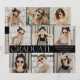 Celebre sua formatura com este anúncio moderno e minimalista com uma colagem de 12 fotos para mostrar sua jornada. A frente exibe seis fotos quadradas com "Graduado" em letras brancas elegantes em um fundo preto ousado, enquanto a parte traseira oferece espaço para mais seis fotos, juntamente com texto personalizável para planos futuros, detalhes da festa de formatura ou uma mensagem pessoal. Personalize com seu nome, escola e ano de formatura para criar um souvenir único. Perfeito para graduados do ensino médio e universitário, este design com várias fotos é uma maneira elegante de compartilhar sua conquista com familiares e amigos.
