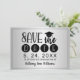 Anuncie sua formatura à sua família e amigos com este elegante, salve a carta de data. Este design apresenta um design de tipografia moderna em preto sobre prata falsa, acentuado por um boné de formatura. A frente do cartão-postal lê "Salvar a Data para comparecer à formatura de" em um roteiro moderno com a data e o nome para você personalizar. A parte traseira do cartão de lançamento tem mais detalhes de sua graduação, incluindo uma convite de festas para você personalizar. Parabéns pela sua formatura! Desenhado pela artista ©Susan Coffey.