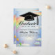 Anuncie seu formandos à família e amigos com este elegante cartão de anúncio e convite de festas. Este design moderno apresenta um boné de formatura preto sobre um fundo de um arco-íris e céu azul com seus detalhes em um roteiro preto abaixo. A parte traseira da placa tem uma convite de festas para você personalizar. Parabéns na sua formatura! Projetado pelo artista Tim Coffey.