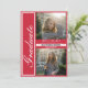 O moderno Elegante 3 Photo Collage Red Graduation Card (Cartão de Anúncio de Graduação Vermelha para Colagem de Fotos) é uma escolha sofisticada para formandos de segundo grau ou de faculdade. Com um esquema de cor vermelha, a caligrafia e um design de colagem com três fotos, este cartão captura a essência da conquista e da celebração. O elegante design incorpora elementos temáticos da graduação, simbolizando a realização acadêmica. É uma forma moderna e na moda para comemorar este marco e é certo que apelamos aos formandos e às suas famílias.