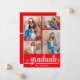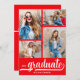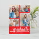 Adicione as suas quatro fotos favoritas à frente destes convites para festas de formatura com formando e classe de caracteres em caracteres chicos em um fundo vermelho. Mais designs e cores feitas em nossa loja, incluindo convites, cartões salve a data e postais.