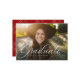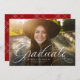 Um formando clássico e elegante em branco fica no fundo de uma foto horizontal. O texto personalizado inclui espaço para o nome do formando e também detalhes escolares e do ano. O backer vermelho clássico tem um padrão de grade simples, e a cor pode ser alterada clicando em "personalizar mais". Anuncie a realização do seu formando aos amigos e à família com este design!