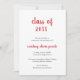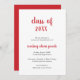 Cartão de anúncio de graduação minimalista com um design simples e clássico com "classe de ano" e o nome do formando em uma letra vermelha grossa sobre um fundo branco. A parte de trás é vermelha sólida. Um cartão de anúncio tradicional com um talento moderno para um formando feminino.
