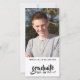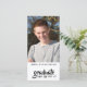 Este anúncio de graduação simples e limpo apresenta uma foto favorita vertical do seu formando. Mostrado em 2019, mas você pode definir para qualquer ano de graduação. O texto diz "formando. Sim, ele fez isso!"