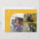 Cartão de anúncio de formatura moderno e caprichoso com 3 fotos na frente e 1 no verso. O texto diz "Ela acreditava que podia, então ela fez" com estrelas cintilantes. Adicione o nome da graduada, informações e mensagem para personalizar este cartão. Amarelo.