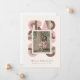 Retro-style, yet modern, graduation announcement photo card that features the word "GRAD" designed with geometric shapes in various colors that form a border around the photo of the graduate. Retro colors—green, dusty pink, mint—add to the card's retro style.