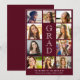 Celebrate your graduate’s milestone moment in style with this modern photo collage burgundy red graduation announcement -- a personalized keepsake designed to showcase their journey from first day to graduation day. Featuring a clean grid layout with 10 photos and a bold vertical “GRAD” white typography centerpiece, this announcement blends timeless elegance with contemporary design. Perfect for high school or college graduates.