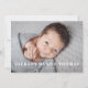 Este simples anúncio de nascimento apresenta o nome do seu bebê sobre a foto do recém-nascido! Adicione mais fotos e detalhes no verso e personalize as cores e fontes para combinar com a foto do seu bebê!