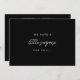 Anúncio de Gravidez 'Pequena Surpresa' do Script Negro Moderno. Personalize este cartão de anúncio de gravidez preto e branco minimalista 'temos uma pequena surpresa para você' com o nome do bebê, data de vencimento, e um ultrassom ou outra foto de maternidade no verso.