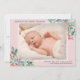 Um cartão de anúncio de bebê de feriado bonito. O design apresenta uma cor aquosa verde buquê sagrado como uma moldura para a foto personalizada do seu bebê. O plano de fundo foi definido para cor rosa suave do bebê. Você pode personalizar facilmente o plano de fundo para qualquer cor de sua escolha. O reverso da placa tem um padrão de bolinhas branco e rosa.