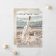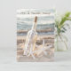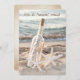 Um encantador par de estrelas brancas aninhadas em areia suave da praia, acompanhado por uma mensagem cativante em uma garrafa para o evento Save The Date. Todo texto é editável.