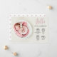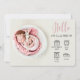 Cartão de nascimento moderno e minimalista que apresenta uma fotografia da sua bebê recém-nascida, com um texto sobreposto em fontes velhas de cinza rosa e escura que leem Olá, sou Elizabeth (personalizável com o nome do seu bebê). As estatísticas de natalidade são personalizáveis editando o texto de modelo e são representadas com ícones simples de cinza. A parte traseira da placa apresenta um padrão cardíaco rosa e bonito em um fundo branco. Para obter mais itens de personalização ou de correspondência, entre em contato comigo em zolicestore@hotmail.com