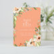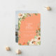 Moldura floral botânica de cor aquática elegante em tons de moda de verde, laranja e pêssego, Casamento Salve o Cartão com fotos de Data. A parte traseira da placa apresenta o modelo de foto do solteiro. Design de tipografia quic com várias linhas para o seu texto personalizado sobre fundo cantaloupe de tendência.
