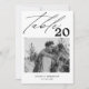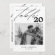 Uma maneira diferente de mostrar os números da mesa de casamento. Projetado para corresponder à coleção "Vivian". Esta modelo inclui uma fotografia que pode ser quando você era criança ou como casal, número de tabela em. tipografia de caligrafia moderna, nomes de casais e data de casamento.