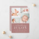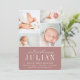 Os anúncios de nascimento elegantes apresentam quatro fotos recém-nascidas dispostas em um layout de colagem em grade em um fundo poeirento de rosa. "Apresentando [name]" aparece abaixo no script de caligrafia e no texto clássico do bloco. Personalize com o nome do cheio do bebê, estatísticas de natalidade e uma assinatura familiar no fundo.