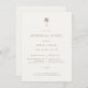 OASIS | Palm Tree, tema da praia da ilha tropical, convite para janto de ensaio. Características, tipografia trendy taupe, detalhe da ilustração da palmeira e fundo colorido do bege arenoso.