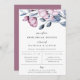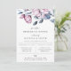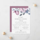 Arranjo floral Elegante de aquarela em tons de roxo mauve e azul poeirento, convite jante de ensaio. Design de fotografia e tipografia moderna. A parte de trás da carta apresenta cor púrpura de vinho mauve escuro sólido. Projetado como parte da nossa Coleção Floral de Mauve Azul Dusty.