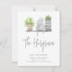 Compartilhe seu novo endereço com anúncios móveis de aquarela doce, apresentando uma prateleira de plantas cercadas e verde com seu nome de família em caracteres manuscritos de script. Personalize com suas informações personalizadas de lançamento e de alteração de endereço.