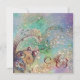 Caprichosos, elegantes, redemoinhos artísticos e pós de fada em tons de azul aqua, verde e brilhos dourados. Detalhe de tríptico, pintura mista com folha de ouro e prata, 2009. O tema aborda arquétipos e simbolismo alquímico medieval. Esta é uma visão destilada do imaginário coletivo ocidental e oriental que busca imagens remotas nas profundezas do misterioso jardim das sombras perdidas.