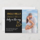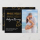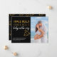 Cartão de Natal personalizado e completo e anúncio de gravidez. Esta design de na moda, em preto e ouro, está pronta para você adicionar sua foto e saudação personalizada, seus nomes e quando o bebê é esperado. O texto diz: "Jingle Bells, Jingle Bells, Baby on Way", escrito à mão, e tipografia moderna do estilo de luz LED. Tem um fundo negro com sinos e corações dourados e muito espaço para a sua mensagem personalizada. Procure designs de alternativo na nossa loja.