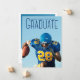 Formando escrito em tipografia azul alta sobre sua foto de retrato de mais velho faz um simples cartão de anúncio de graduação para um jogador de futebol em uma equipe esportiva. Personalize com seu nome e segundo grau ou classe universitária de 2025 e adicione seus detalhes pessoais na parte traseira dessas placas de formando de camada de texto minimalista. Personalize com uma fotografia de segundo atrás.