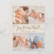 Cartão de nascimento do tema do Natal moderno, com um texto manuscrito que diz "alegria ao nosso mundo" com 4 fotos. Este é um cartão de anúncio de nascimento para as férias! Adicione suas fotos, estatísticas de natalidade e uma mensagem! O fundo é creme.