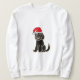 Cão preto adorável do labradoodle dos desenhos animados que veste um chapéu do papai noel. Bonito e divertimento para os feriados. Pode igualmente adicionar o texto feito sob encomenda ao pedir