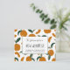 A frente do nosso cartão de anúncio de novo endereço com tema da Flórida mostra pelo que o Estado do Sol é conhecido... laranjas! A parte traseira do cartão apresenta uma grande flor de laranjeira artística colocada contra uma moldura de texto com um exemplo de texto pré-impresso que você pode revisar com sua mensagem digitada pessoal ou excluir para ter espaço para uma nota escrita à mão. Todo o texto na frente e no verso do nosso cartão de mudança de endereço é facilmente revisado no modelo Personalizar. Parte da nossa Coleção de Mudança de Endereço da Flórida, esse tema de design também inclui um cartão de anúncio de nova casa maior com envelope, um cartão-postal e dois rótulos de novo endereço.